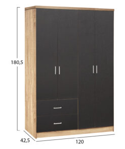 Τετράφυλλη ντουλάπα Olympus με δύο συρτάρια σε χρώμα wenge